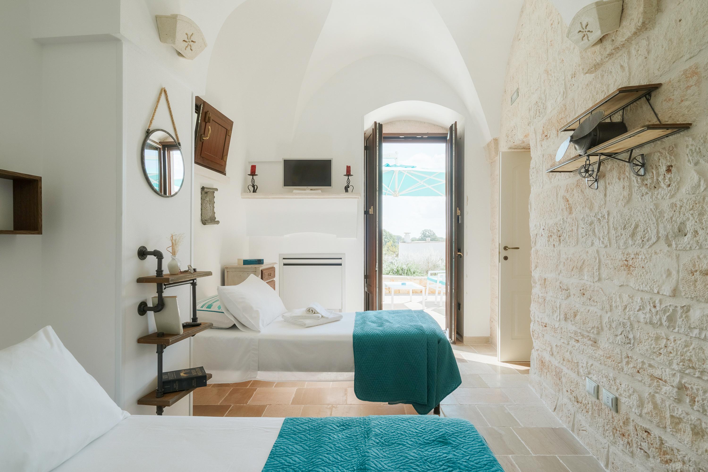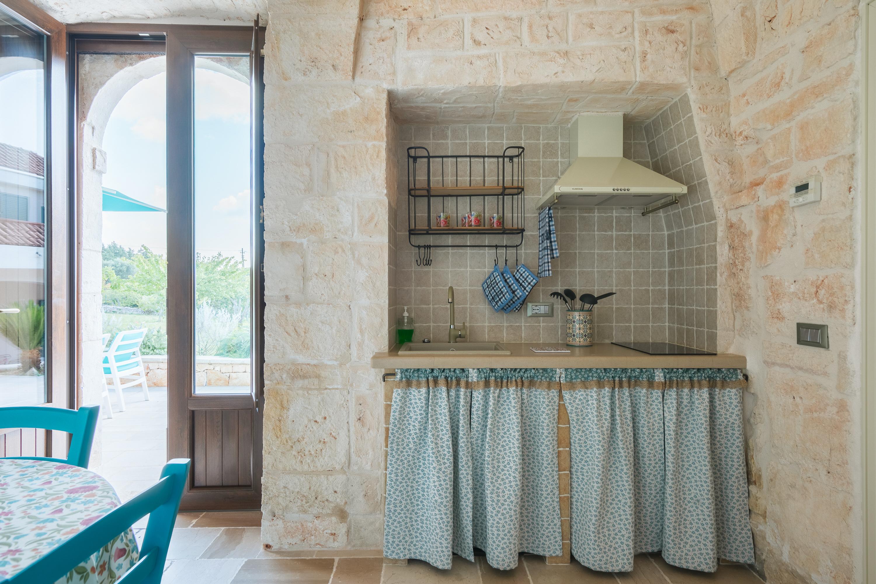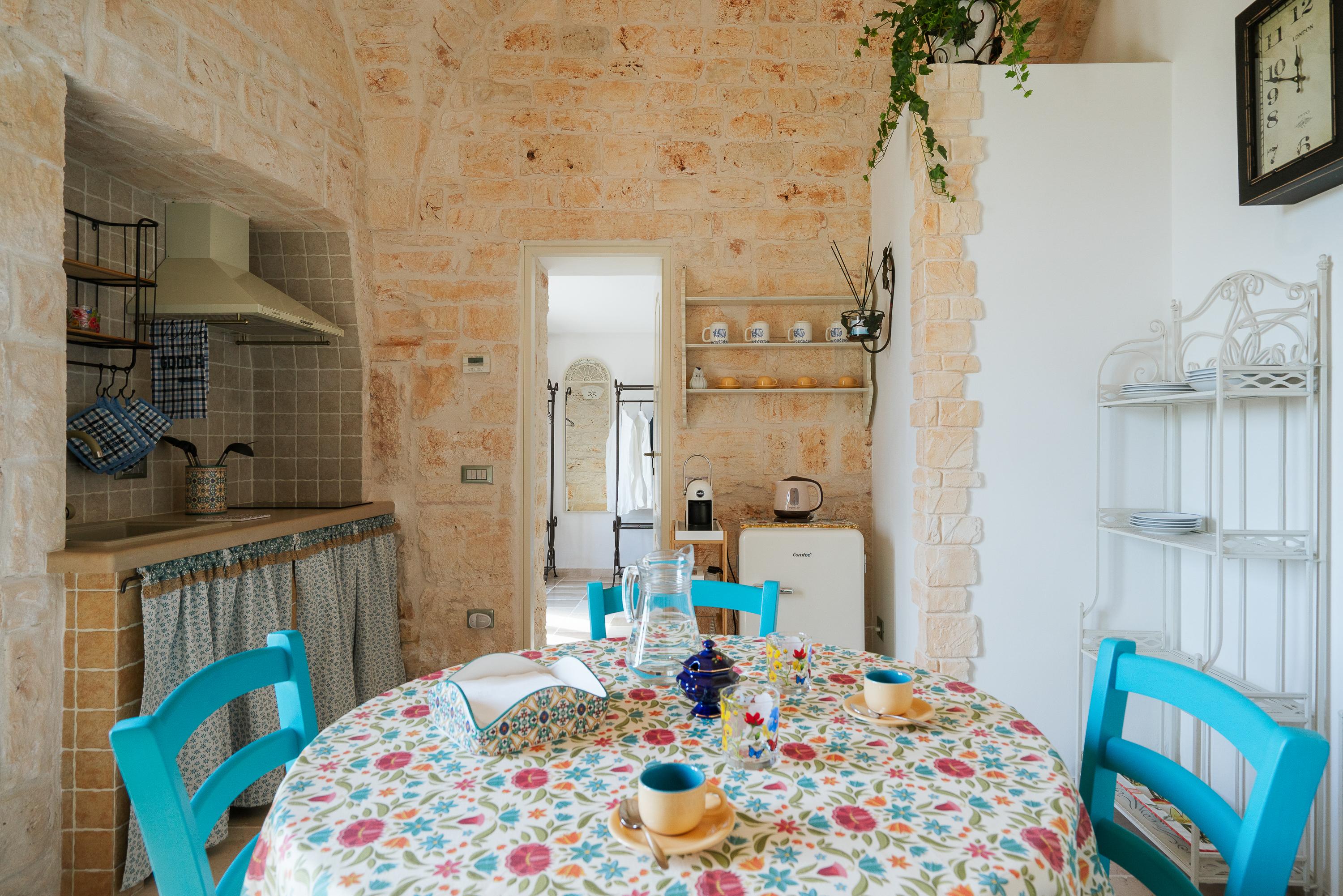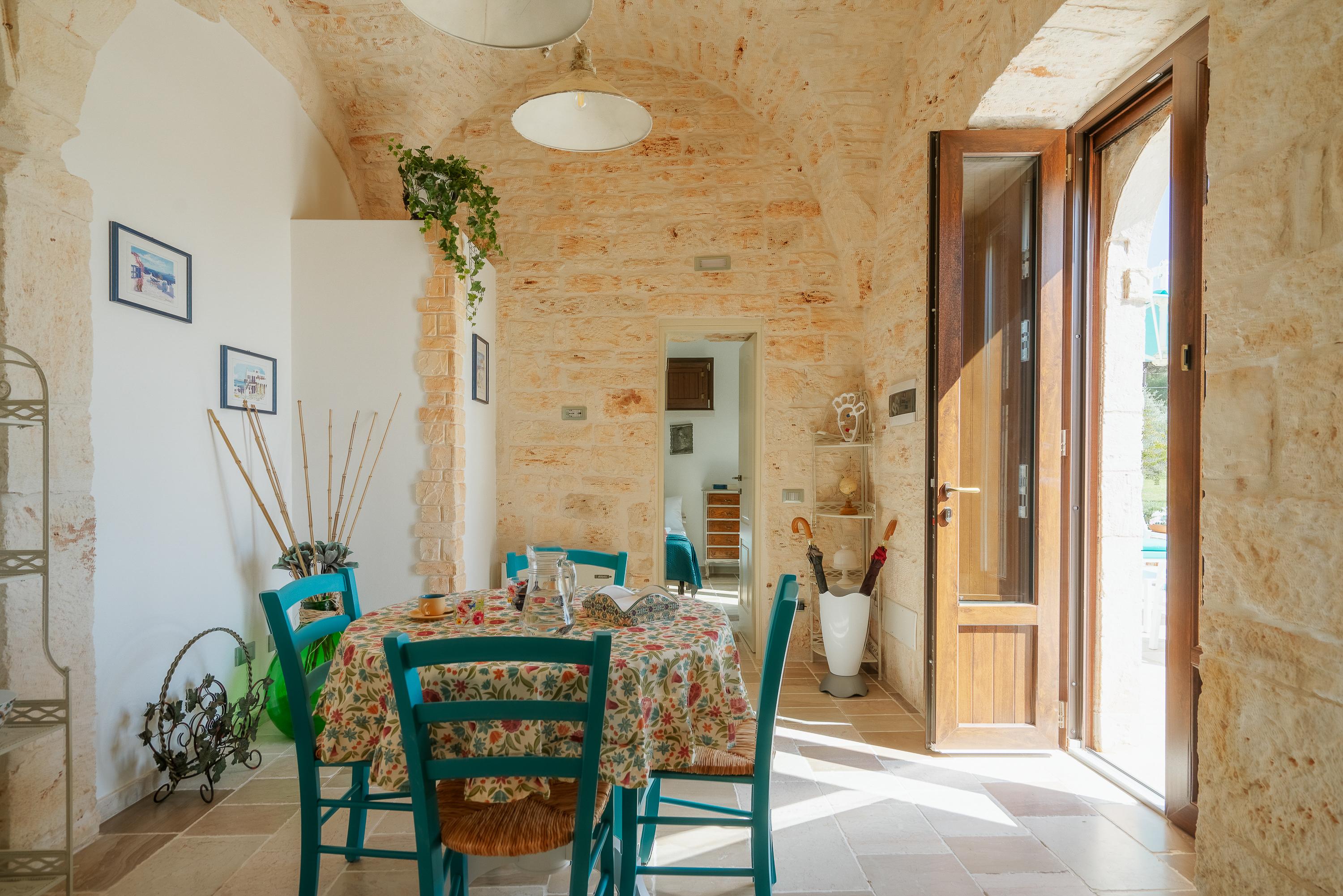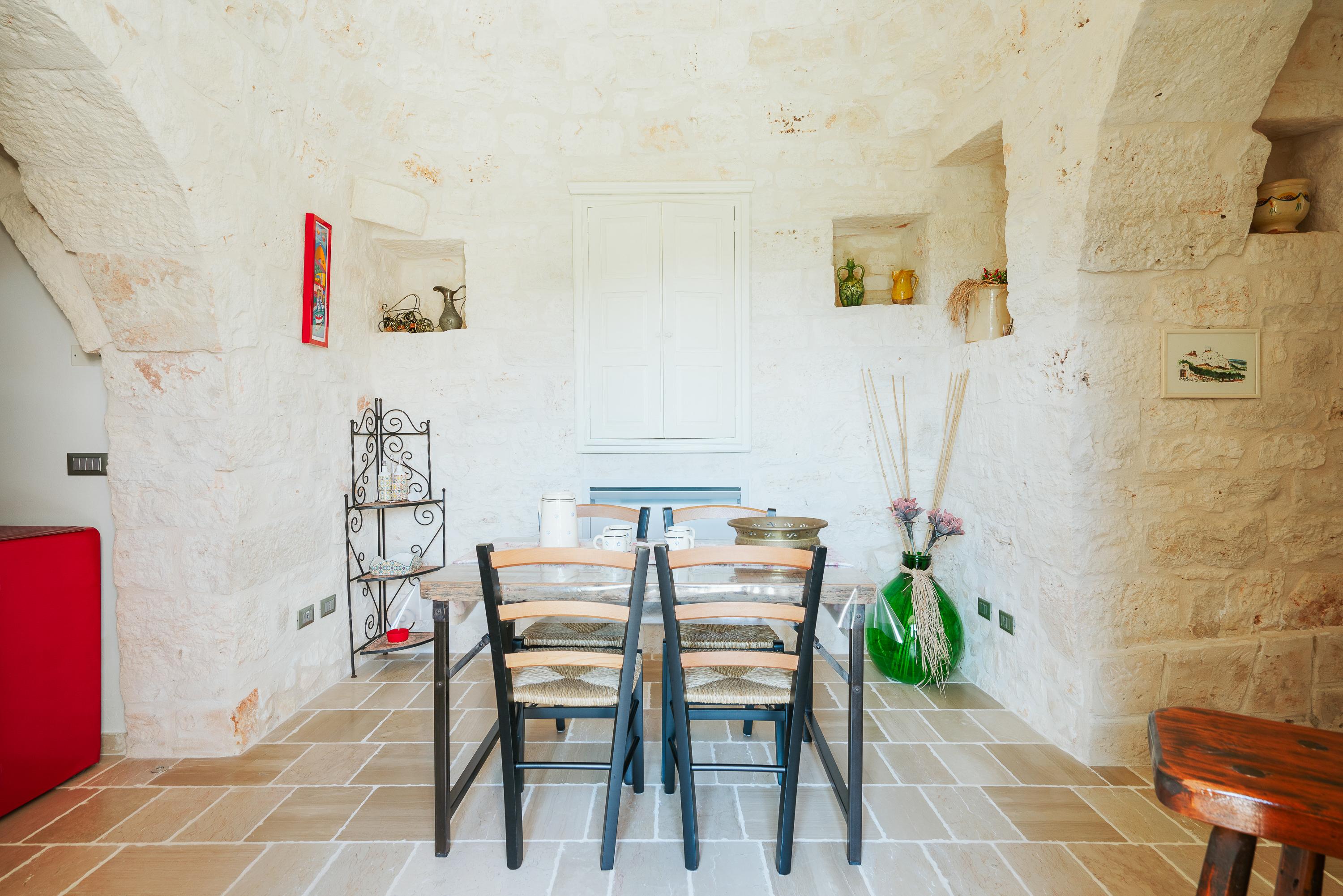 3- A charming traditional trullo with a living room, kitchenette, and two double bedrooms with a private bathroom.